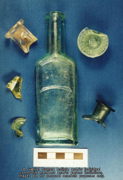 | Description: | Photograph of a Perry Davis Medicine bottle as well as bottle fragments found during a Cumberland House, Saskatchewan archaeological dig. |