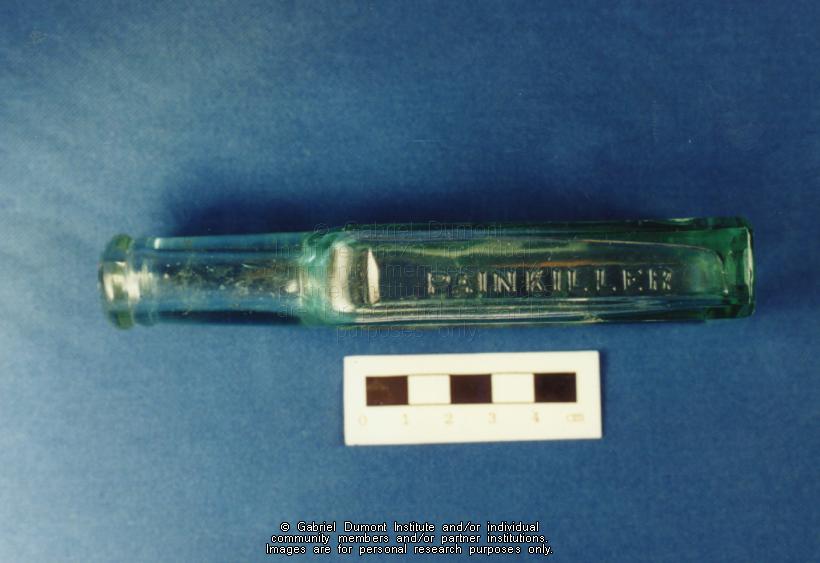 | Description: | Photograph of a Perry Davis Vegetable Painkiller Medicine bottle found during a Cumberland House, Saskatchewan archaeological dig. |