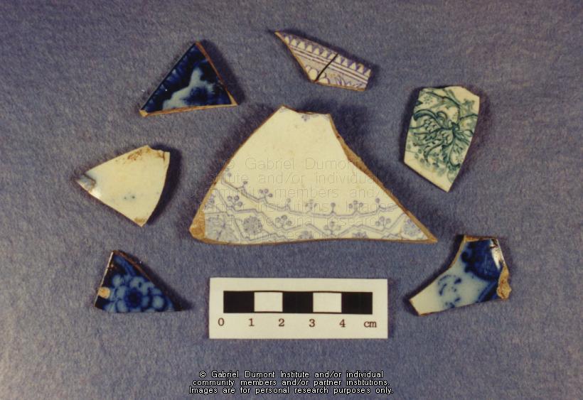 | Description: | Photograph of assorted plate fragments found during a Cumberland House, Saskatchewan archaeological dig. |