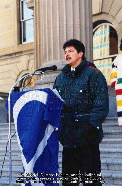 | Description: | Photograph of a politician at a podium addressing a crowd, possibly in Alberta. |