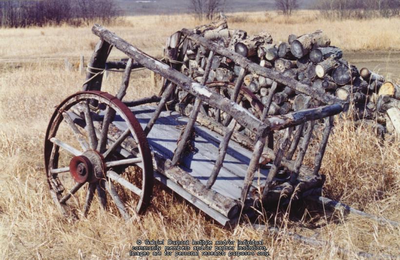 | Description: | Photograph of a Red River Cart in a field. |