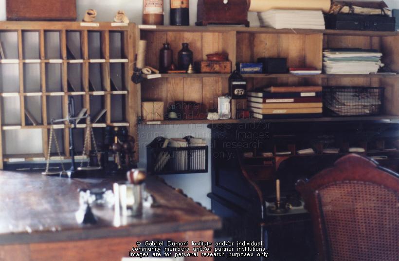 | Description: | Photograph of the post office located in the rectory at Batoche. |