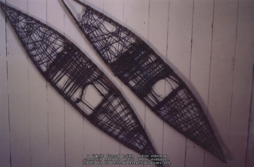 | Description: | Photograph of snow shoes mounted on a wall. |