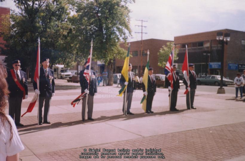 Description: Photograph of an honour guard of Métis veterans launching the Prince Albert Métis Fall Festival.