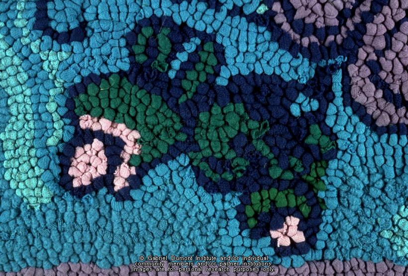 | Description: | Close up photograph of a rag hooked rug. This item is part of the Gabriel Dumont Institute Museum Collection. |