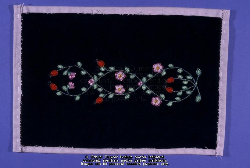 | Description: | Photograph of a circular pattern on green velvet - 1 of 2, made by Anne Dorion. This item is part of the Gabriel Dumont Institute Museum Collection.