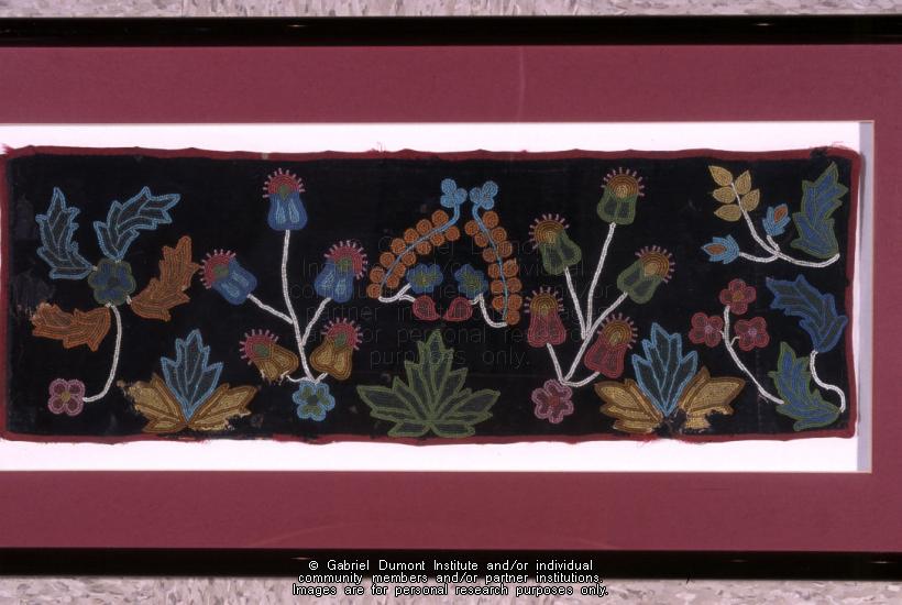 Description: Photograph of a beaded panel - framed. This item is part of the Gabriel Dumont Institute Museum Collection.