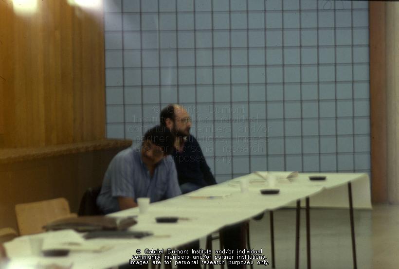 | Description: | Two men sitting down at an Association of Métis and Non-Status Indians of Saskatchewan (AMNSIS) in 1984. AMNSIS was the forerunner of the Métis Nation – Saskatchewan. |