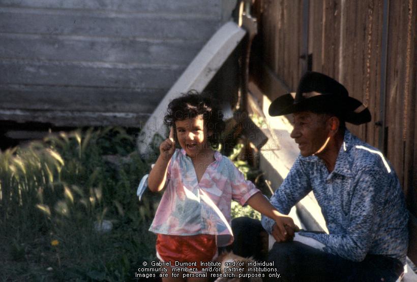 | Description: | Image of a small Métis child and her grandfather taken in 1984. |