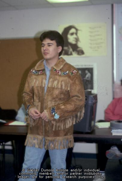 | Description: | Image of SUNTEP student in beadwork coat. |