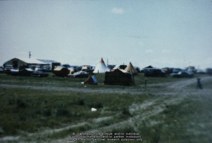 | Description: | An image of the campgrounds at Back to Batoche Days in the 1970s. |