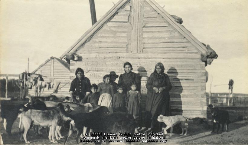 | Description: | Chipewyan women and children with their dogs at "Buffalo River" (Dillon, SK), September 1908. From the Frank J.P. Crean fonds. |