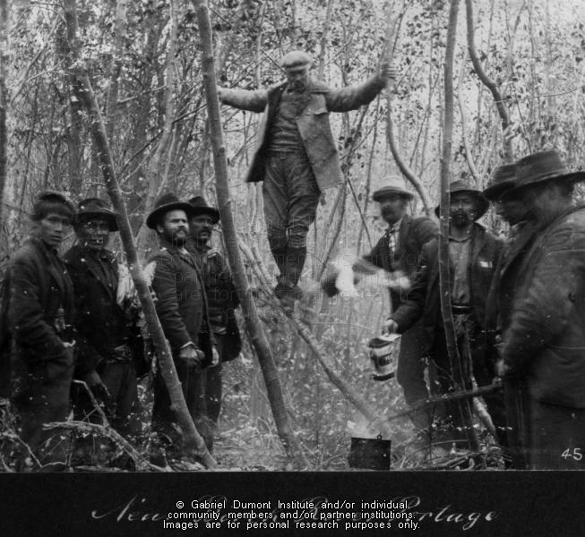 | Description: | Half-Breed Commissioner's York boat crew around a camp fire below Birch River portage, 1900. From the Narcisse-Omer Cote fonds. |