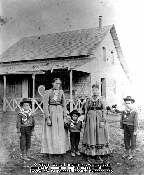 | Description: | Ile a la Crosse, old Revillon Frères residence. Laliberte Family: left to right: Victor (age 6), Marie Adel, Adolph (age 3), Margaret, Alexander.