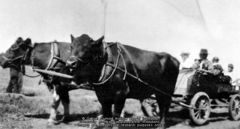 | Description: | A Bennett Buggy pulled by oxen at at 50th anniversary gathering of homesteaders at Crescent Lake, near Yorkton.