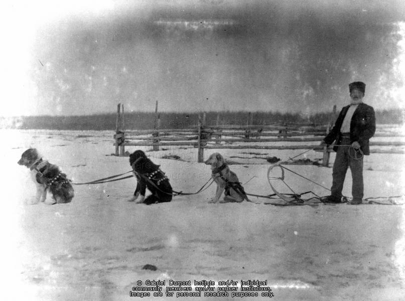| Description: | "En Route for Green Lake, Saskatchewan." A dog-drawn toboggan. |