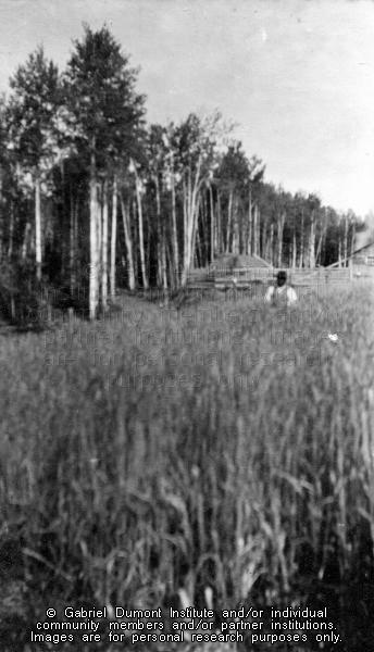 | Description: | Man standing in a wheat field at the Roman Catholic mission at Lac La Plonge, (Beauval), SK, September 1908. From the Frank J.P. Crean fonds.