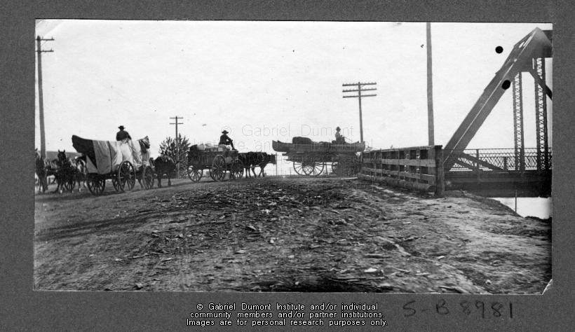 Subject: Surveyors, Surveying, Wagons, Bridges, North Saskatchewan River, Prince Albert