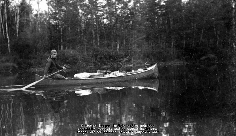 | Description: | A member of the New Northwest Exploration expedition canoeing on the Beaver River, 1909. From the Frank J.P. Crean fonds. |