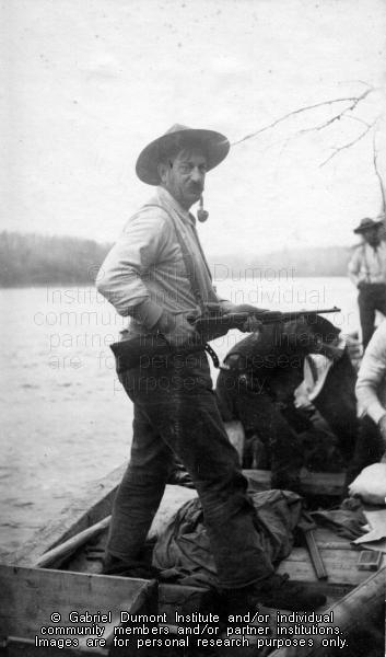| Description: | Frank J.P. Crean (foreground) and other members of the New Northwest Exploration expedition in a boat on a river in northern Saskatchewan, 1908-1909. From the Frank J.P. Crean fonds.