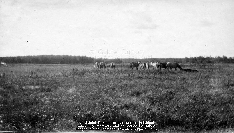 | Description: | Horses grazing near Meadow Lake, SK, August 1909. From the Frank J.P. Crean fonds. |