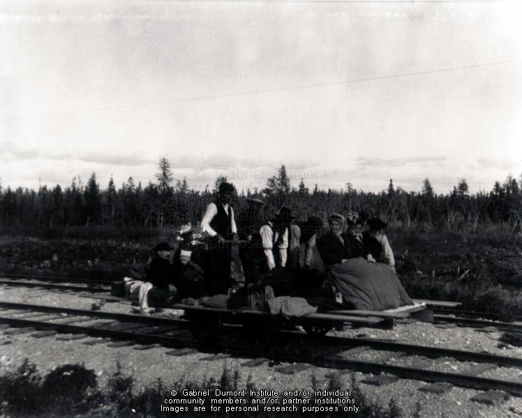 | Title: | People on a Flat Car on Railroad Tracks to The Pas |