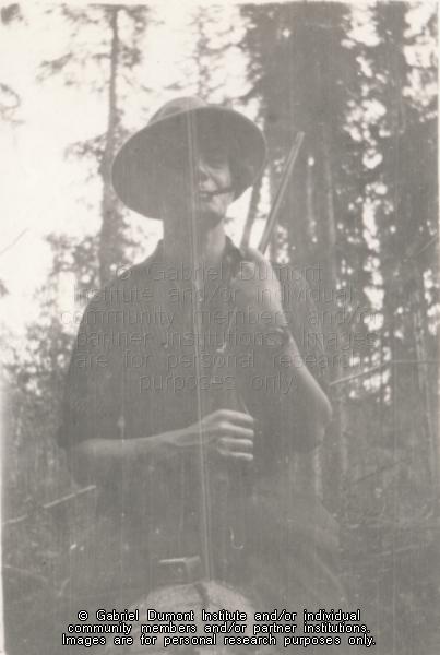 | Description: | Aboriginal hunter sitting on log. Trip of Christina Bateman and Annie McKay to La Ronge. |