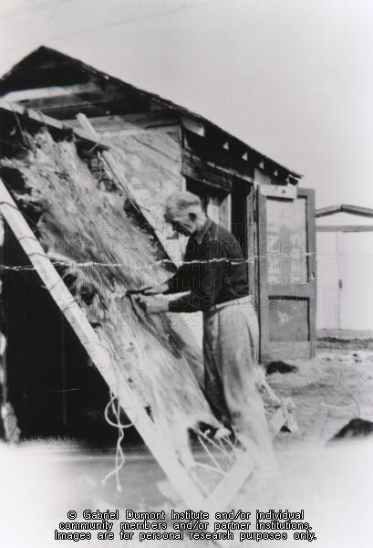 | Description: | Carl Lynn Scraping Elk Hide, 1951. Unknown photographer and location. |