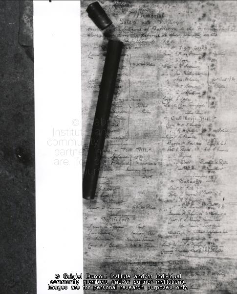 | Description: | List of soldiers killed in the Riel Rebellion of 1885 for Memorial Gates and Pillars in Battleford, found in Battleford in 1961.