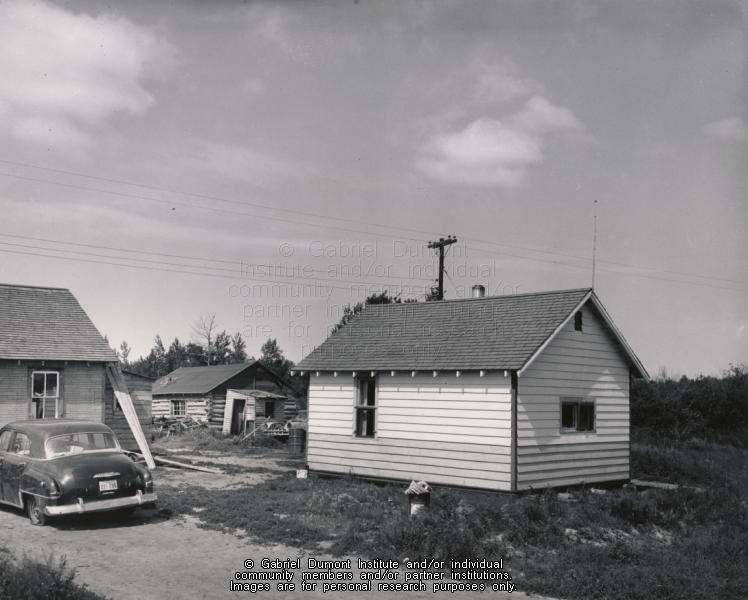 | Description: | Log cabin and modern home of Norman Petit, Buffalo Narrows, SK, 1961. |