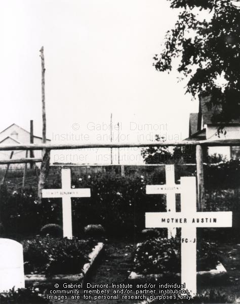 The grave of Mother Mary Anne Frances Austin F.C.J. (1841-1887), first principal of St. Ann's Academy, Prince Albert, in the cemetery at St. Michael's Indian Residential School. The gravesite is in Duck Lake, SK.