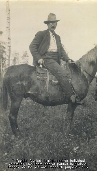 | Description: | Frank J.P. Crean on horseback, northwestern Saskatchewan, 1908-1909. From the Frank J.P. Crean fonds. |