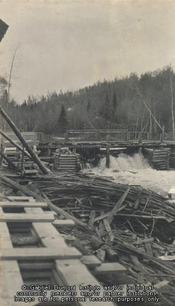 | Description: | The dam on the river at the sawmill at the Roman Catholic mission at Lac La Plonge (Beauval) SK, September, 1908. From the Frank J.P. Crean fonds.