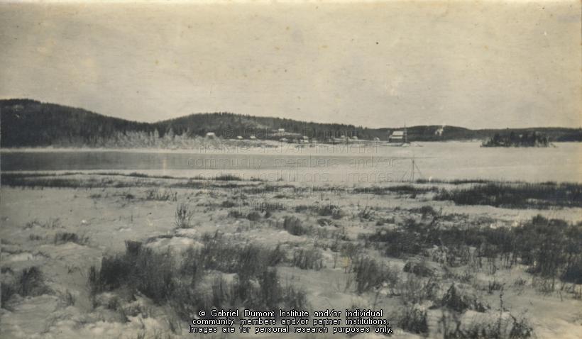 | Description: | View of Stanley Mission and the Holy Trinity Anglican church from across the lake, December 1908-1909. From the Frank J.P. Crean fonds. |
