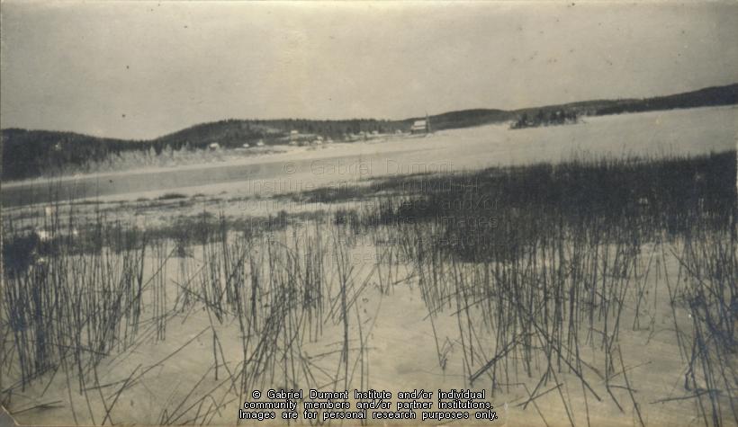 | Description: | View of Stanley Mission, SK from across the lake, December 1908. From the Frank J.P. Crean fonds. |