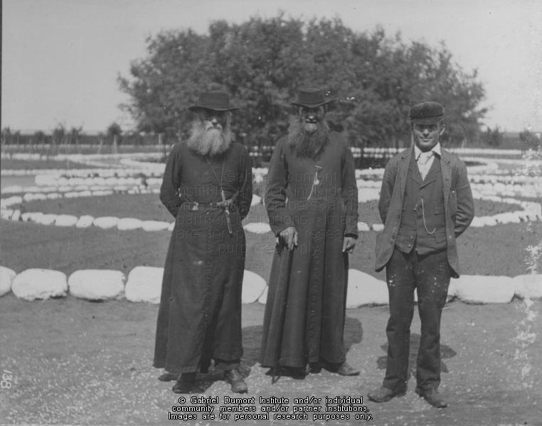 | Description: | Two Roman Catholic priests (Father Paquette centre) and a layman at the Indian Industrial School, Duck Lake, 1900. From the Narcisse-Omer Cote fonds.