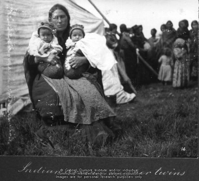 | Description: | An Indian women holding her twin babies, Green Lake NWT, 1900. From the Narcisse-Omer Cote fonds. |