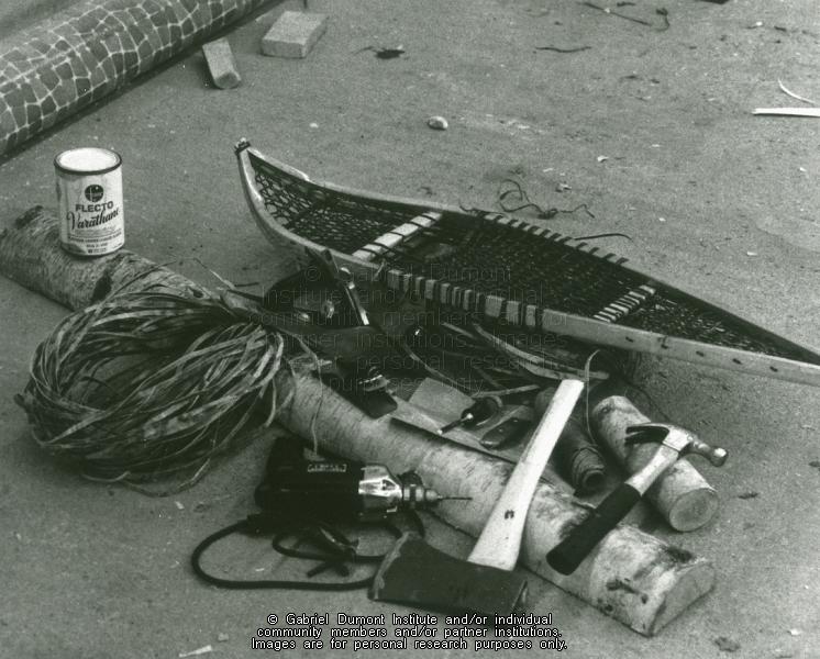 | Description: | Albert Daigneault – Ile-à-la-Crosse – Straightening snowshoes – Co-op Industries