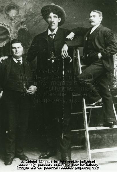 | Description: | Edouard Beaupré with Octave Gaudry (left) and ? Gaudry (or J. Lauzière or E Lauzière on ladder) c. 1902