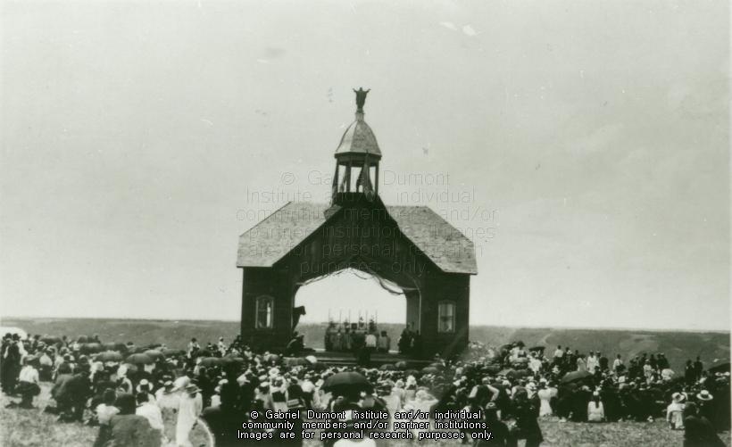 | Description: | First pilgrimage (and blessing?) at the Sacred Heart Shrine at Lebret. This shrine was later destroyed by fire – cause unknown