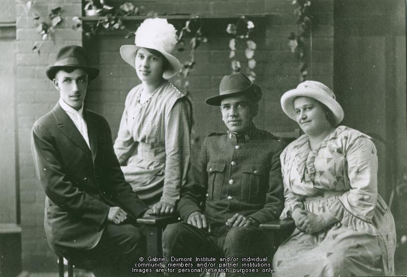 - Joined Sask. Provincial Police, January, 1914; resigned 1921 - Left to Right: Edward Messner, Mrs. Messner (Mr. LaRocque’s wife’s cousin), Mr. LaRocque (in SPP uniform), Mrs. LaRocque. |