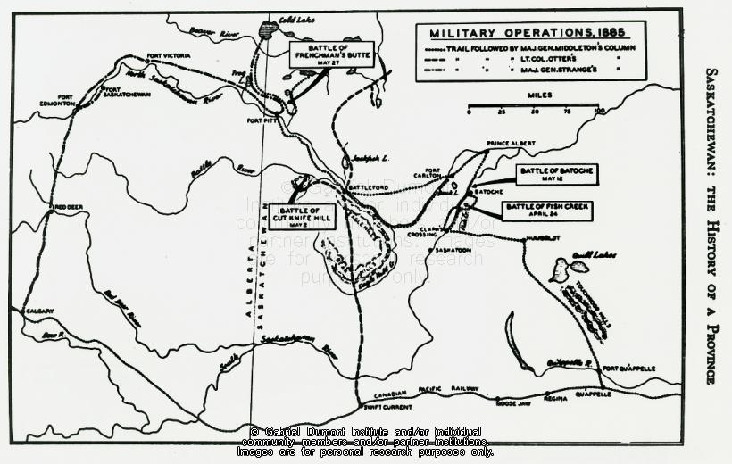 In Saskatchewan. The History of a Province, p. 92 by S.F.C. Wright Military Operations, 1885 |