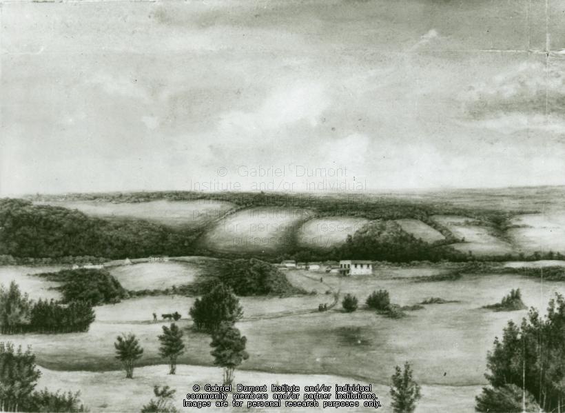 | Description: | “Batoche from a distance with opposite bank of N. Sask river in background".