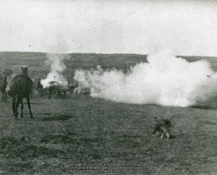 | Title: | “Shelling Batoche, last shot before the attack on the guns” |