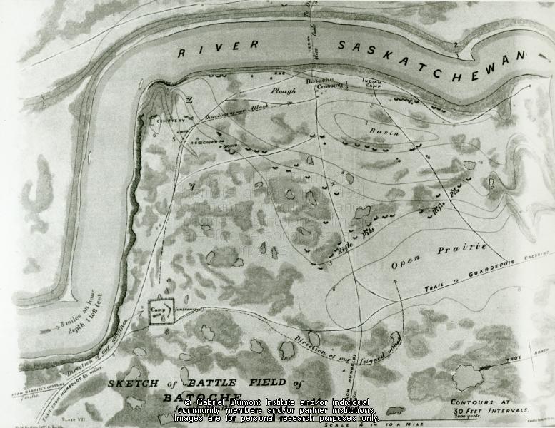Sketch of Battlefield of Batoche Copied from Sessional Papers, vol. XIX, no. 5, 1886 |