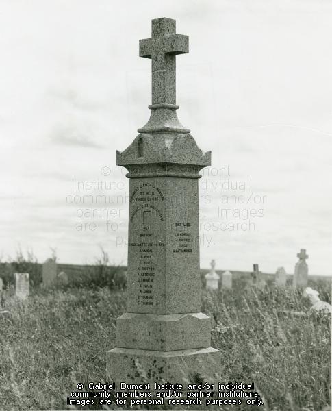 Monument and Memorials Monument erected in the Batoche cemetery to commemorate the Métis who died during the Riel Rebellion of 1885. Sept. 1957 |