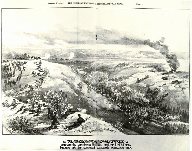 “The Canadian Pictorial and Illustrated War News” “The Attack of the Rebels at Fish Creek” |
