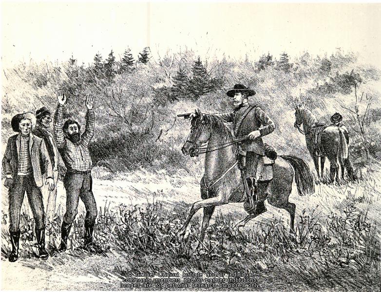 | Description: | “Capture of Louis Riel by the Scouts Armstrong and Hourie, May 15, 1885”