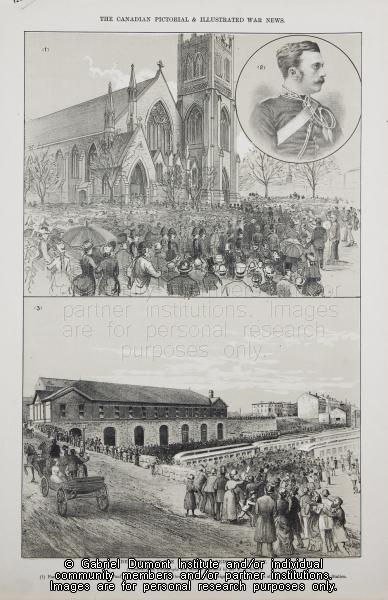 | Description: | These illustrations contain three images relating to Montréal during the 1885 Resistance and includes: (1) “Parade for Divine Service at St. Paul’s Church”; (2) “Lt.-Col. Oswald”; and (3) “The Brigade going on the cars at the Canadian Pacific Railway Station”. |