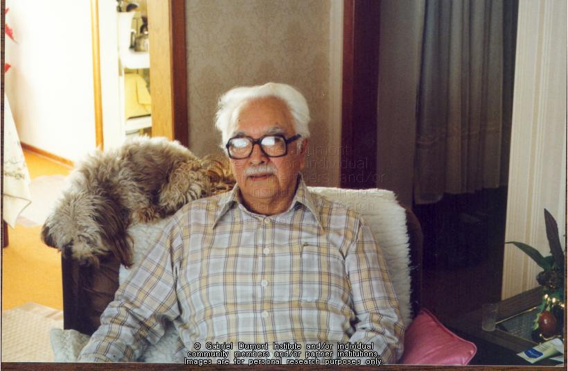 Photograph of Joseph Martial Poitras. Joseph came from Lebret, SK, and was in military service from January 3rd, 1940 to August 31st, 1945 and from May 7th, 1947 to September 2nd, 1968. He served as a private, corporal and sergeant in The Royal Canadian Army Service Corps. He served in the United Kingdom, the Mediterranean, Sicily, Italy and Europe; Joseph was also awared the 1939-45 Star, the Italy Star, the France and Germany Star, the Defence Medal, the Volunteer Service Medal and Clasp, the War Medal (1939-45), and the Canadian Forces Decoration and Clasp. Josephʼs story can be found in "Remembrances: Interviews With Metis Veterans". To purchase Métis Veterans: Remembrances please visit: GDIʼs E-commerce Site. |